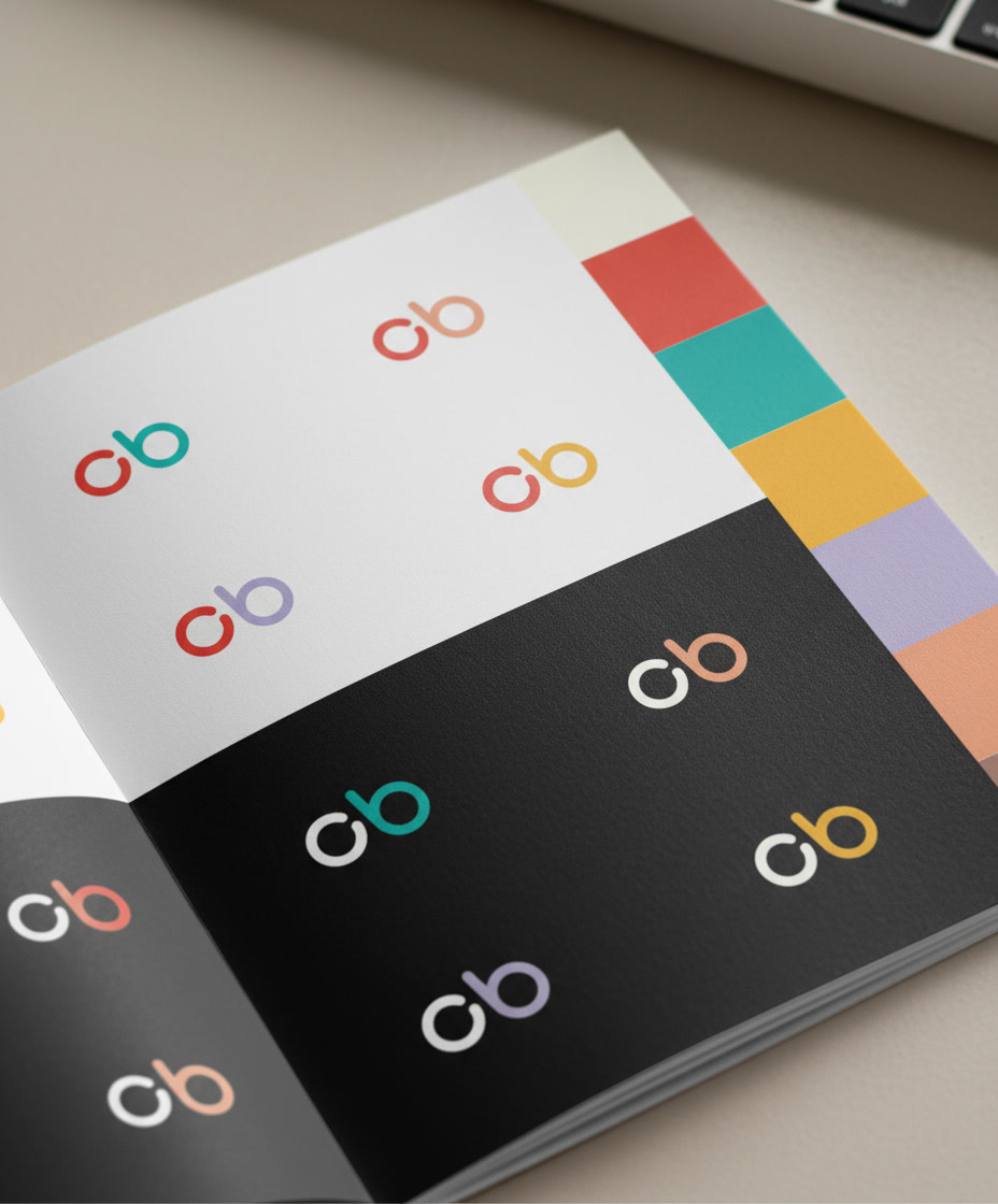 Coral and teal colors inspire energy and imagination bright for kids but polished for retail and digital use. The lowercase logo adds warmth, and the simple “cb” mark works independently on packaging or digital platforms.